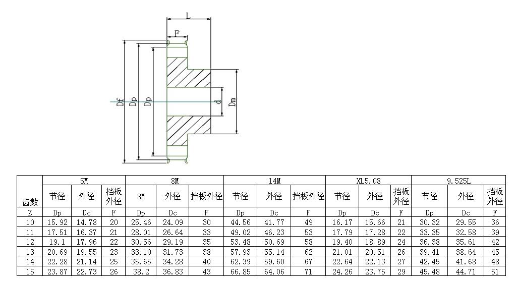 同步帶輪示意圖及尺寸對照表 諾廣廠家提供