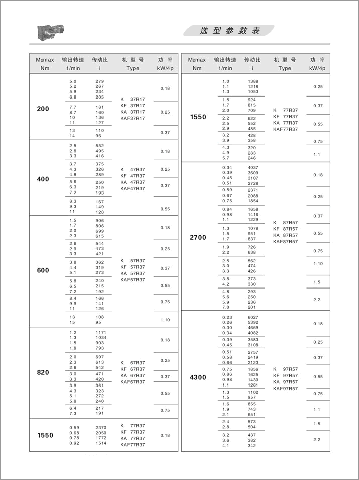 下一篇:K螺旋錐齒輪減速機(jī)選項(xiàng)參數(shù)表90KW、110KW、132KW、160KW、200KW